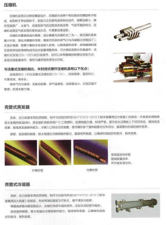 ?     機組采用半封閉雙螺桿螺桿式壓縮機,與活塞式壓縮機比較,半封閉螺桿壓縮機具有如下優勢: