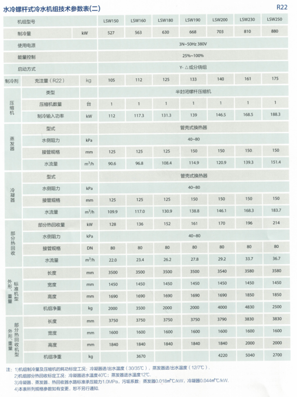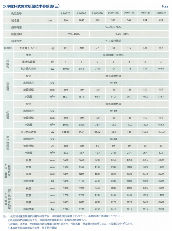 風冷螺桿冷(熱)水機組標準型系列產品冷媒可采用R22R407CR134A,共計80多個不同的品種規格。