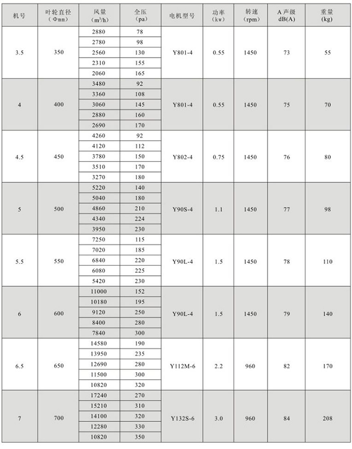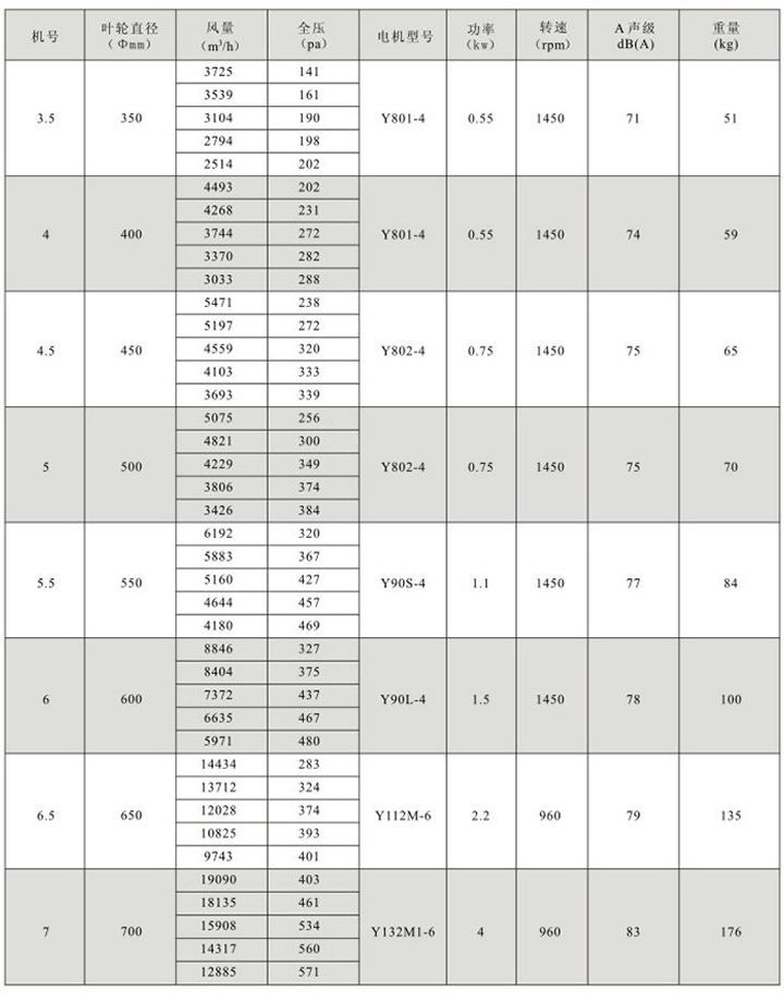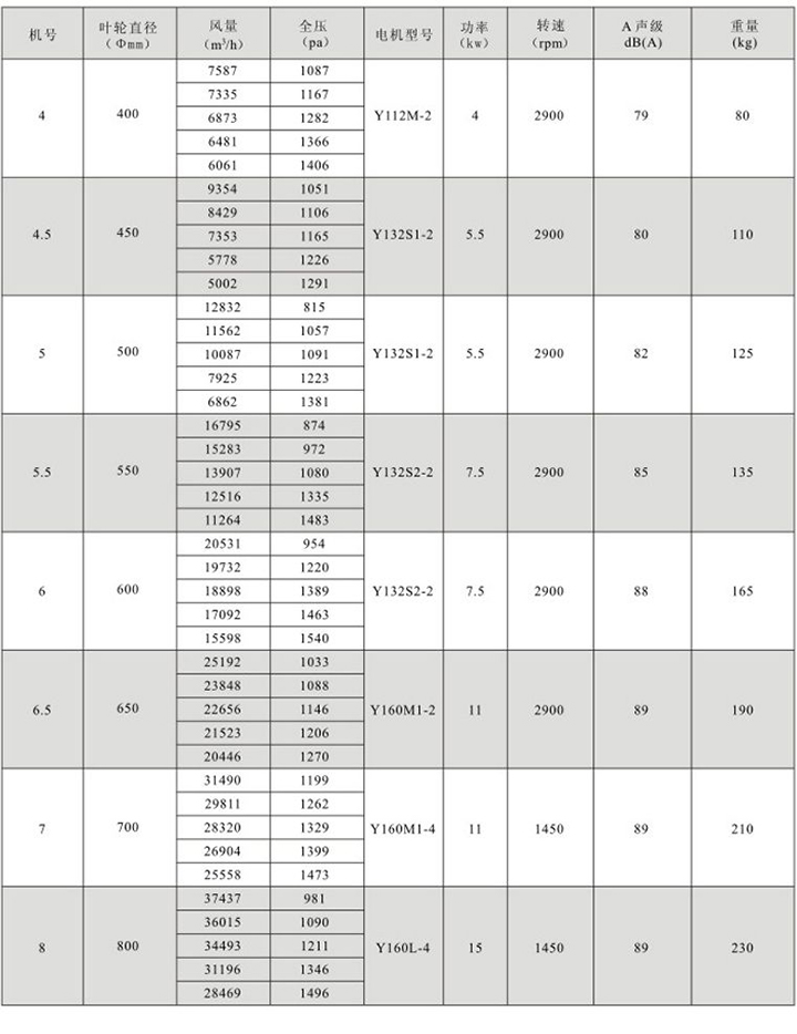 風(fēng)機(jī)主要有葉輪、機(jī)殼、進(jìn)口集流器、導(dǎo)流片、電動(dòng)機(jī)等部件組成。葉輪采用有子午加速特點(diǎn)的扭曲平板片焊接在輪轂上。經(jīng)動(dòng)平衡校驗(yàn),超速試驗(yàn),具有良好的空氣動(dòng)力性能。機(jī)殼采用圓筒形,與消音功能的集風(fēng)器聯(lián)接成整體。出口裝有導(dǎo)流片,具有良好的氣流分布,壓力穩(wěn)定。
