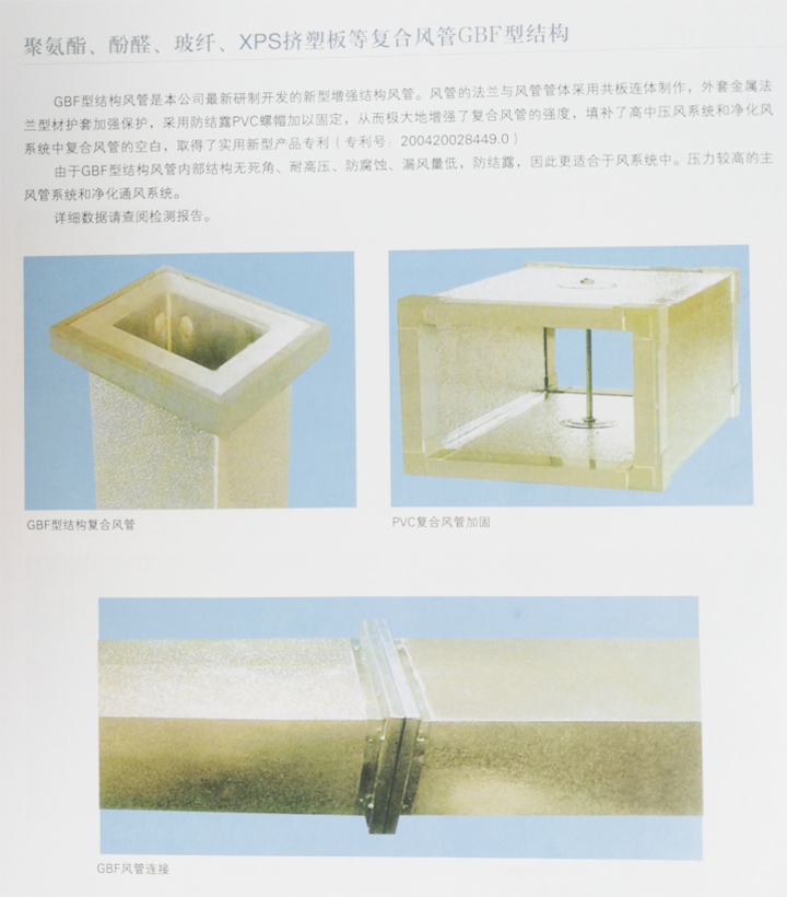 復合風管是將保溫板材表面粘貼高純度軋花鋁箔,按照工程需要制成集風道與保溫材料為一體的新型風管。保溫材料選用三種材料,一種是厚度為25mm的離心玻纖板,一種是厚度為20mm的硬質聚氨酯板;一種是厚度為20mm的硬質酚醛板。 本公司通過對國內外生產廠家的調研,取長補短,自行研制了復合風管機械化生產線,并專為復合風管設計了兩種連接機構,加強其密閉性能。是通風管道系統最為理想的更新換代產品。 復合風管主要特點: 1、強度大:抗壓抗變形,結構穩定,長期使用不變形、不扭曲、不分解,具有優良的壓縮強度和拉伸強度。 2、導熱系數?。航浗ㄖ茖W研究所測定,其導熱系數為0.22-0.03w/m.k,優于其他常用保溫材料。 3、防火性能好:達到并超過國家GB8624-1997標準,玻纖板為難燃A級,聚氨酯板為難燃B級,酚醛為難燃B級。 4、制造設施簡單:生產風管只需幾件常規的小型工具和工作平臺,無需剪刀車、折邊機等專用工具。 5、重量輕、安裝便捷:保溫板材平均容量為50-80kg/m3,風管連接采用GBF型連接,插條式連接及T型加固型連接,施工安裝快捷方便,一般安裝速度為50m3/日/人。 6、使用壽命長:由于風管內外層為高純度軋花鋁箔,表面與空氣接觸,將形成具有穩定的AL2O3保護層,保溫板材為高分子材料,使用壽命是鍍鋅風管的4-6倍,一般可以達到30年以上。 7、氣密性能極佳:經同濟大學供熱通風與空氣調節實驗室測試表明,當管道內靜壓為2000Pa時,其漏風量均低于標準值。當管道在內外壓差4200Pa時,目測其管道均未有變形和裂損。